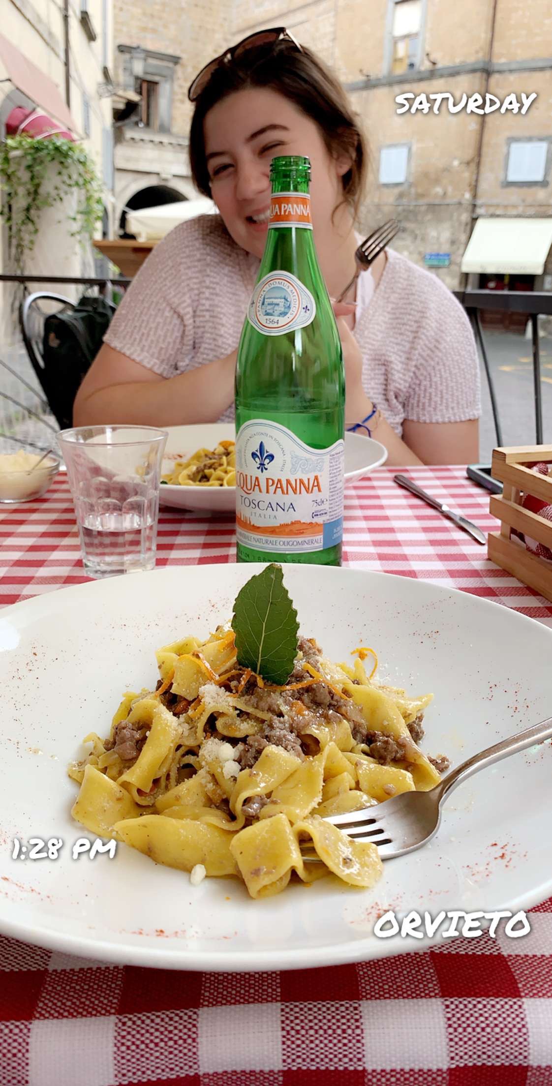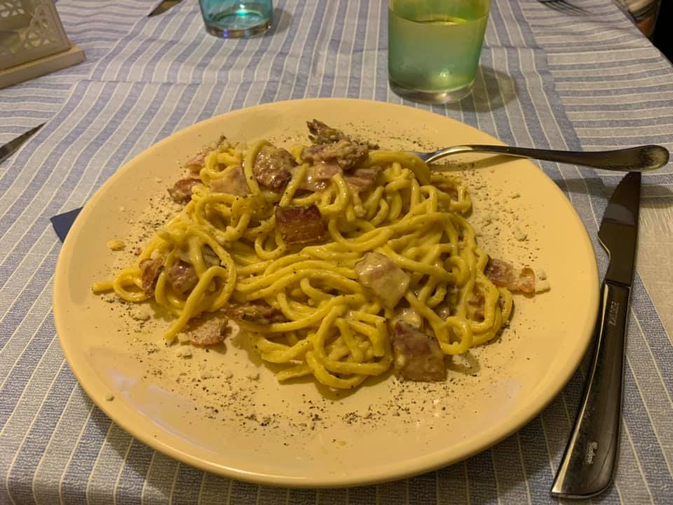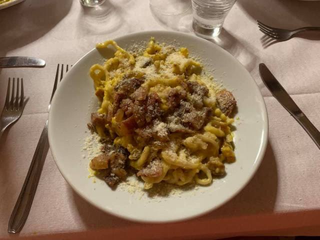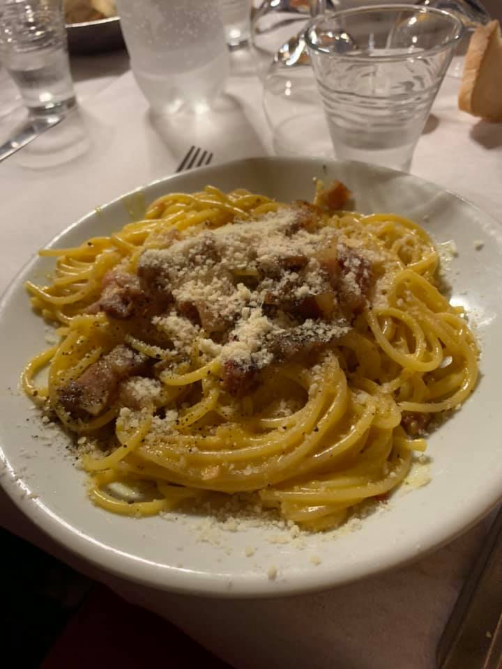 For food the past week I actually ate a lot of pizza at a few different places and also had some carbonara at a couple different places. At the beginning of the week I tried a new restaurant in Orvieto and had the carbonara. The restaurant was called Trattoria Dell’Orso and I was not a huge fan. I have had a lot of carbonara while I have been here and it was definitely my least favorite of all the places I have tried. On Tuesday I tried a place called Pizzeria Antica Arte Napoletana and it was definitely the best pizza I have had. I had the margherita pizza on Tuesday and it was so delicious and then on Wednesday I actually ordered take out for the same place and I got the diavola. I usually get diavola everywhere I go when I get pizza, and this one was okay but not my favorite however the pizza itself was still pretty good. On Thursday night I went to Mezza Luna and it was amazing. I had been there once before so to try something different I got umbrichelli noodles, but I still got carbonara. It is still the best carbonara I have had since I have been here.