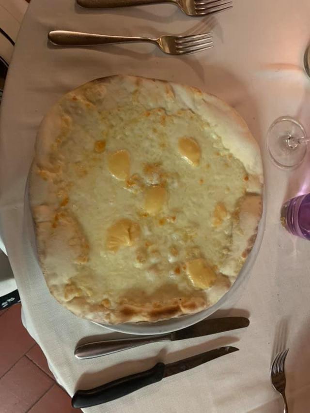This is the pizza I had at the cave restaurant. It was okay but I would probably never get it again. It was a lot different than American four cheese pizza.