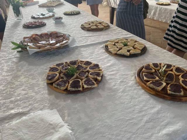 Picture Seven: These are the different snack items we had with the wines at the second winery. As you can see there were many options to choose from my favorites was the bread with meat on top there were two different meats and I liked both and I also enjoyed the bread that just had olive oil on top.
